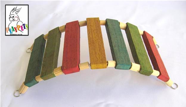 Placa em madeira com capa brancae metades de poleiros coloridos colados, formando uma rampa.