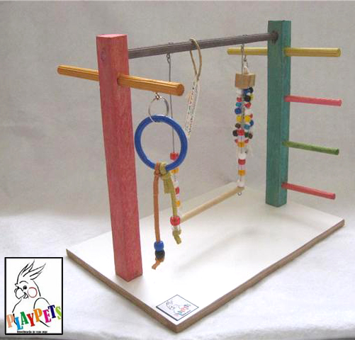 Playground PEQUENO da linha comum, pintado com corantes alimentícios que não prejudicam a ave. Tamanho 30x40x25cm (comprimento x largura x altura).