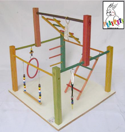 Playground MAXI da linha comum, com madeiras coloridas à base de corante alimentício, que não prejudica a ave. Tamanho 55x40x45cm (comprimento x largura x altura).
